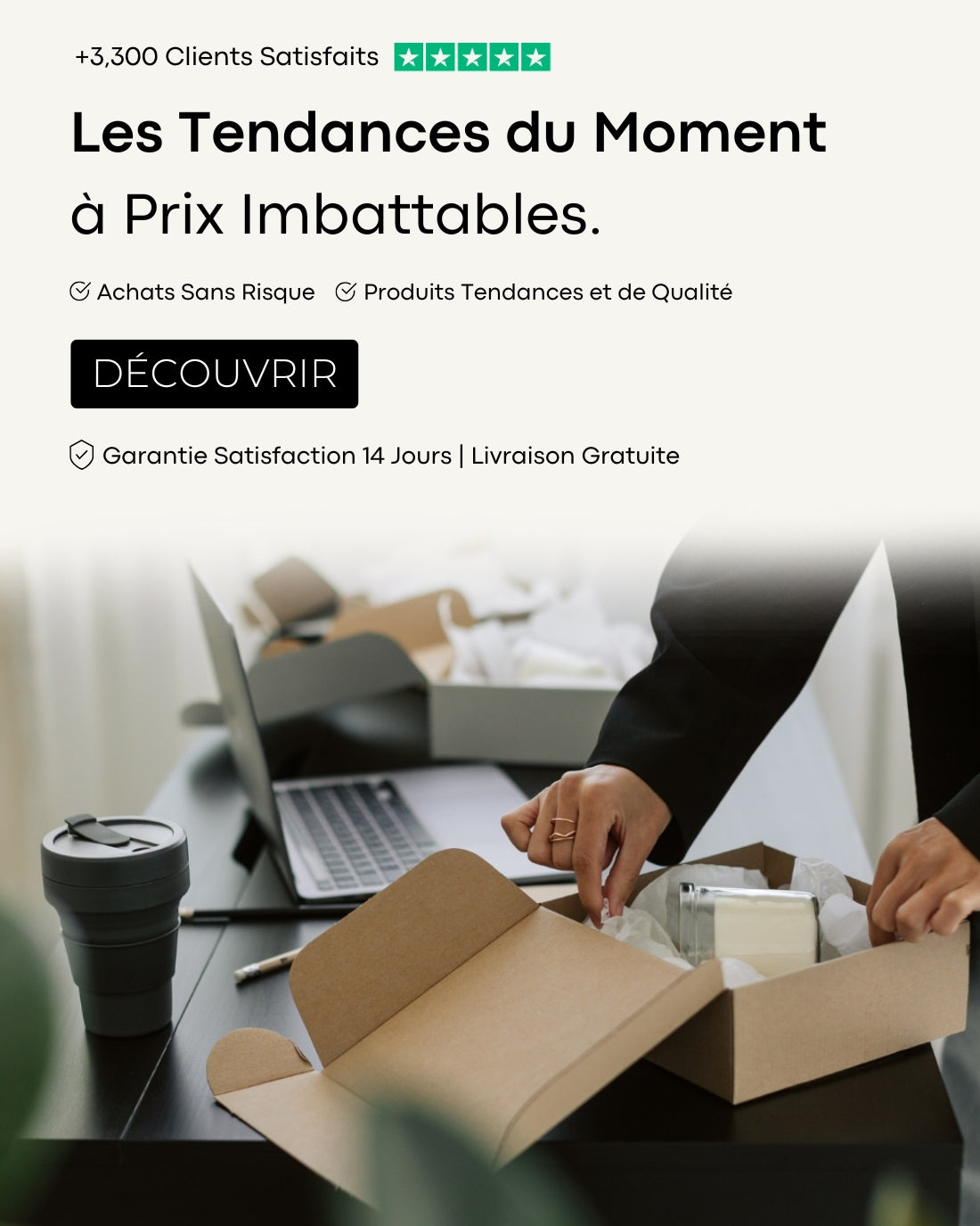 Notre mission ? Vous offrir une expérience d’achat fluide, des prix attractifs et un service client à l’écoute. Commandez en toute confiance et profitez de nos offres exclusives toute l’année !