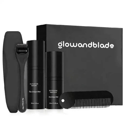 Notre processus en 3 étapes, unique et innovant, vous permet de faire pousser votre barbe de manière simple et efficace. Le Coffret Gloryve contient un Sérum Activator, un Beard-Roller, un Sanitizer et un peigne.